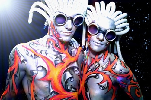 Михаил Tau много работает оформляя выставки и презентации, для клубов он создает целые боди-арт шоу. Его работы отличаются высокой детализацией, профессионализмом и эффектностью