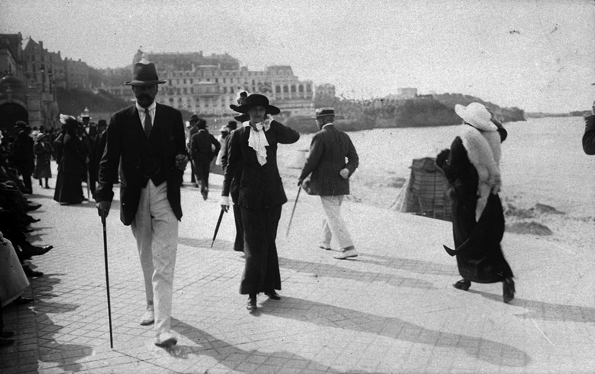 Совсем другой срез истории представила архивная фотография. И дело не только в том, что она уже всем зрителям без исключения являла невиданный лично мир (начало 1900-х), оттого особенно любопытный, но и в том, что кадры были сделаны членами царской семьи – Николаем II и его братьями-великими князьями – в Петербурге, Москве и в кругосветных путешествиях. Это, конечно же, любительские кадры, так сказать, для семейного альбома, а не для истории, но со временем ставшие историческими свидетельствами давно минувших дней, представляющими совсем иную атмосферу тем не менее хорошо узнаваемых городов. Любопытно заметить, что европейские города, курорты в большей степени сохранили свою уникальность, первобытный колорит, нежели российские. И вообще старая фотография может рассказать очень много любопытному зрителю – значительно больше, чем просто знание об объекте. Стиль жизни, мода, привычки, экономика, общество, даже политика. Можно из этих отпечатков узнать, какая публика – по социальной и национальной принадлежность – посещала общественные сады, допустим, Ниццы в 1902 году, чем она там занималась, как были благоустроены сады, чем примечательны платья и многое другое.