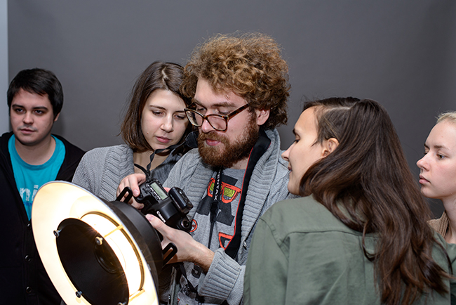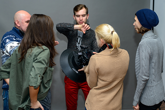 За короткой лекцией следовала активная фотосессия. В ней принимали участие студенты курса и фотомодель.