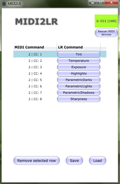С помощью приложения MIDI2LR вы можете различным кнопкам, движковым и вращающимся регуляторам вашего контроллера сопоставить те или иные параметры в панели управления Lightroom. Можно сделать сколько угодно назначений параметров, а соданные конфигурации целиком сохранять и снова загружать при последующем использовании.