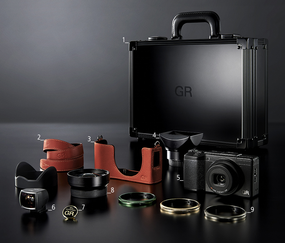 Украшение набора — юбилейный бейдж GR Digital, выпущенный специально к 10-летней годовщине выпуска первой цифровой фотокамеры серии GR (выпущена в октябре 2005 года).