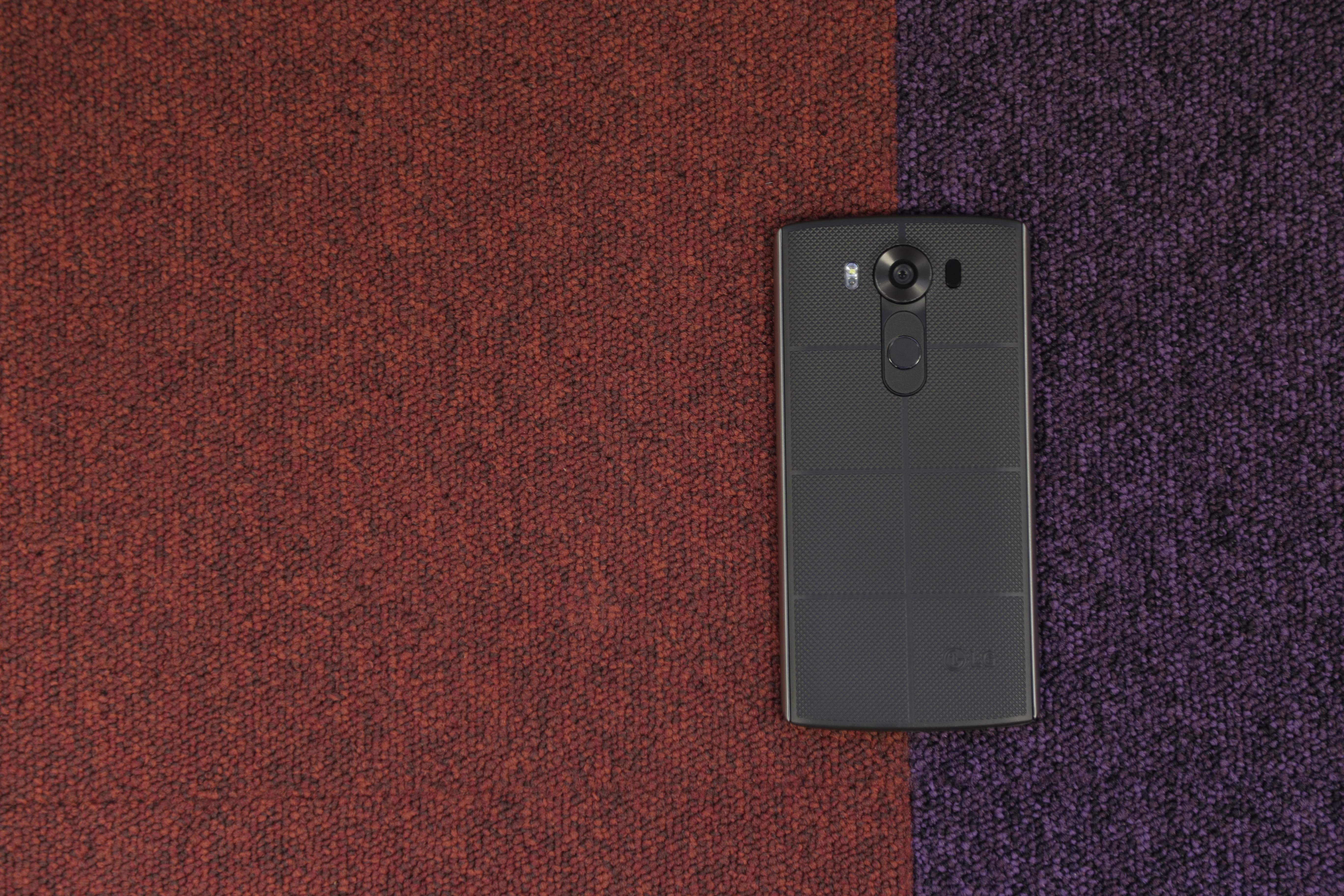 Коротко расскажем о LG V10. В первую очередь, внешний вид. Устройство выглядит очень крепко, ведь здесь используется рамка из нержавеющей стали DURA Guard и мягкое покрытие задней стенки DURA Skin. Кнопки остались сзади — это фирменная фишка LG, но сзади под клавишей питания находится и сканер отпечатков пальцев. Интересное нововведение.
