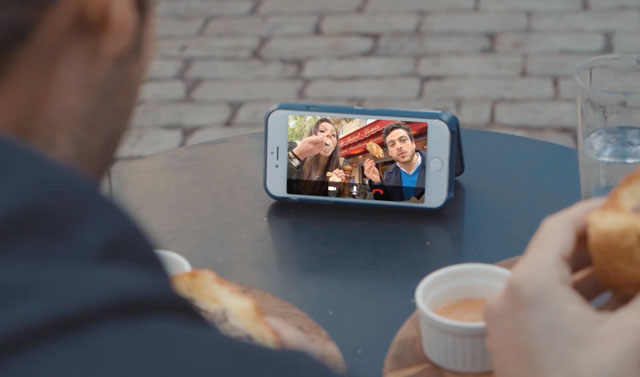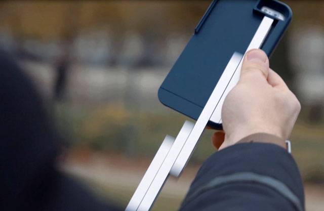 Толщина чехла всего лишь 16 мм, и задняя его часть содержит сложенные алюминиевые секции селфи-палки суммарной длиной около 71 см. Когда палка вам понадобилась, просто раскладываете ее, потянув за последнюю секцию, а затем поворачиваете телефон на нужный угол, и можете снимать.