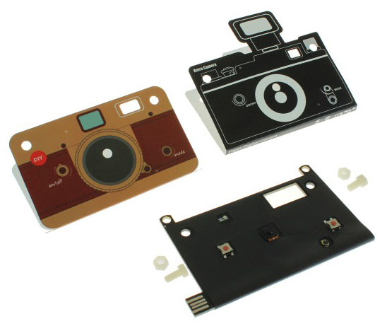 Эта игрушечная камера выполнена, или, наверное, правильнее будет сказать «нарисована», в стиле ретро, а толщина ее корпуса – всего 6 миллиметров. Фактически, это просто набор крошечных камерных компонентов, запечатанных в картонный корпус.