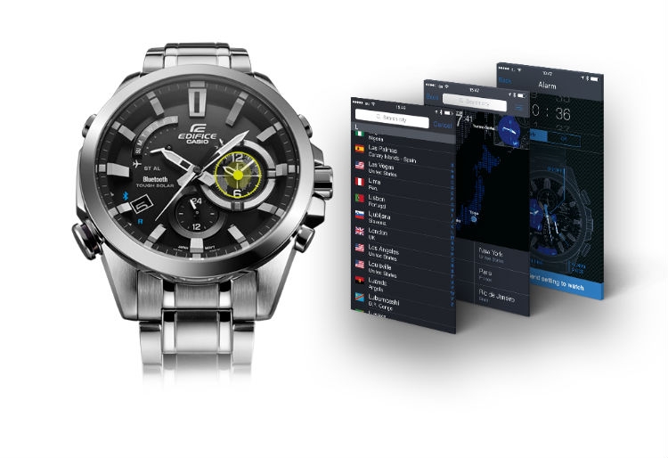 Возможен также и вариант ручной настройки времени с помощью мобильного приложения Casio, которое включает в себя более трёхсот предустановленных локаций. Часы имеют два основных циферблата для отображения текущего времени в двух предустановленных геопозициях. Пользователь может легко переключаться между ними с помощью кнопки управления сбоку, выставляя на основной циферблат время в разных зонах, что очень удобно для тех, кто много путешествует, перемещаясь из одного часового пояса в другой.