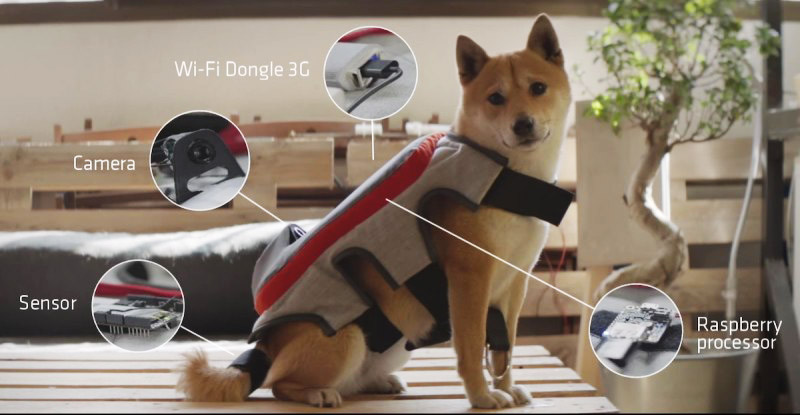 В жилете используется установленный на хвосте собаки датчик, а также процессор модульного конструктора Raspberry Pi, который по движениям хвоста распознает моменты максимального эмоционального подъема животного, делает снимок и отправляет его в Facebook.