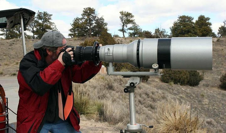 Хэдли устанавливает объектив с помощью специального адаптера на свой Canon 40D, получая эквивалентное фокусное расстояние 1600 мм.