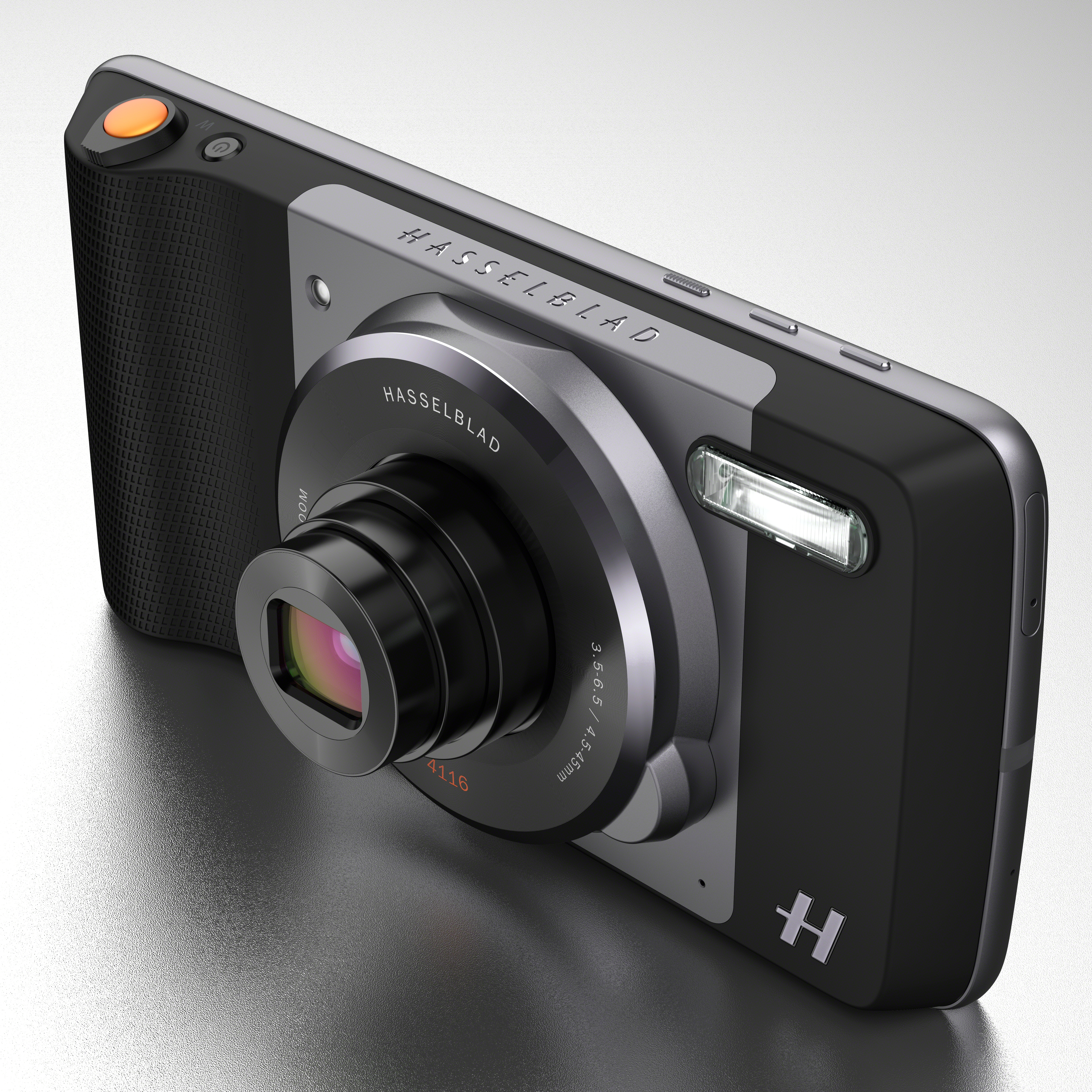 Модуль Hasselblad работает крайне просто: цепляете на корпус смартфона, включаете клавишу питания и объектив выдвигается, как в компактной камере, а на экране запускается фотоприложение. Важно отметить, что на модуле есть ручка хват, физическая кнопка спуска затвора, выполненная в оранжевом цвете, фирменном для бренда, а также ксеноновая вспышка. При использовании модуля Hasselblad True Zoom смартфон получает возможность сохранять снимки не только в JPG, но и в RAW.