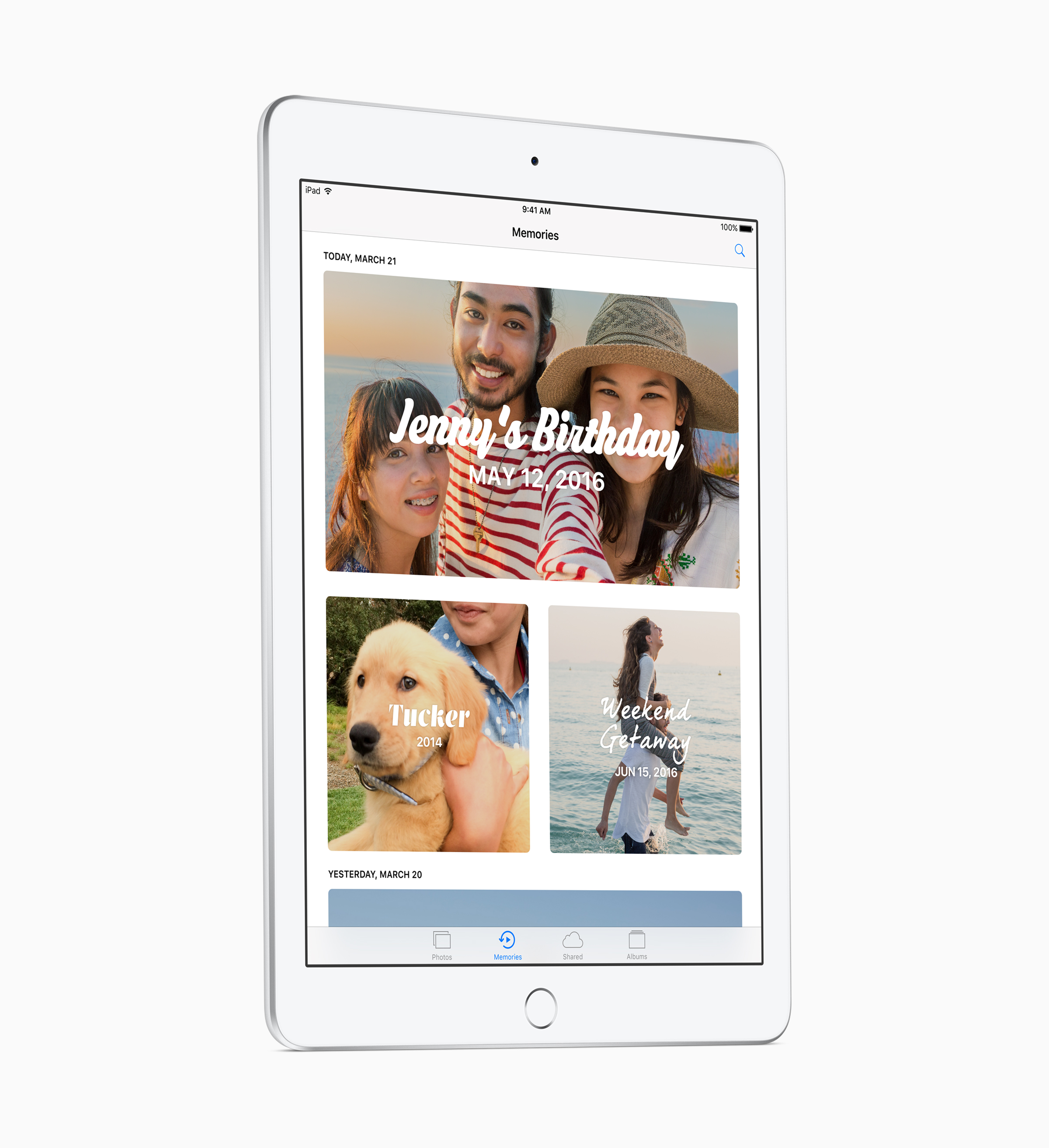 iPad поставляется с iOS 10, обеспечивающей более выразительные и анимированные способы общения с использованием Siri в ваших любимых приложениях, красивых Картах с новым дизайном, Фото, Apple Music и News, а также новым приложением «Дом», которое даёт возможность с лёгкостью управлять домашними аксессуарами с одного устройства и настраивать их. А с такими функциями многозадачности, как Slide Over, Split View и «Картинка в картинке» перед вами открывается ещё больше возможностей.