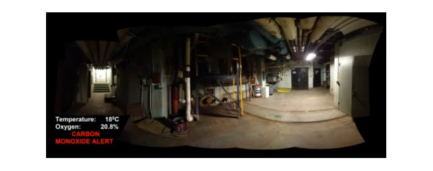 Съемка ведется с частотой 2 кадра в секудну в диапазоне близком к инфракрасному. Наличие инфракрасной подсветки позволяет получать картинку из темных или задымленных помещений. Кроме фотосъемки робот передает данные об уровне содержания в воздухе окиси углерода, кислорода, температуре. Количество параметров по химическому анализу может быть бОльшим (то есть, прибор может быть изготовлен с учетом специальных требований заказчика).