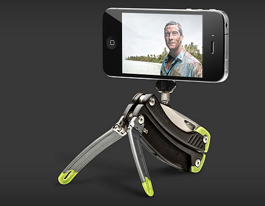 Многие фотографы обладая хорошими зеркальными камерами часто носят с собой и компактный фотоаппарат, который всегда "под рукой". Как раз для мелких камер (или смартфонов) Gerber предлагает миниатюрный штатив, который представляет собой набор складных инструментов, похожий на сладной нож.