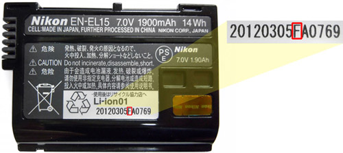 Опасаться стоит тем пользователям D7000, D800, D800E и V1, которые купили свои камеры или дополнительные аккумуляторы к ним в марте или апреле, если в 14-тизначном серийном номере их аккумуляторной батареи на девятом месте (слева) содержатся символы E или F.