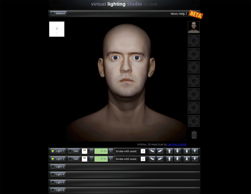 Virtual Lighting Studio позволяет налядно отслеживать изменение световой схемы, в зависимости от количества источников света, их мощности и расположения относительно модели.