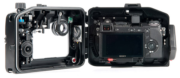 Система закрывания аппарата устроена так, что достаточно просто закрыть крышку бокса. И более никаких действий не потребуется. Смена объектива в боксе может производиться без доставания фотокамеры из него, но, естественно, не под водой. Розничная стоимость подводного бокса NA-NEX6 составляет 1650 USD.