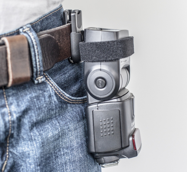 Производитель аксессуаров для фототехники, компания Spider Camera Holster, представила интересное приспособление для крепления носимых приборов. С помощью крепления Spider Monkey можно подвесить вспышку или экспонометр на поясной ремень и, при необходимости, быстро снять.