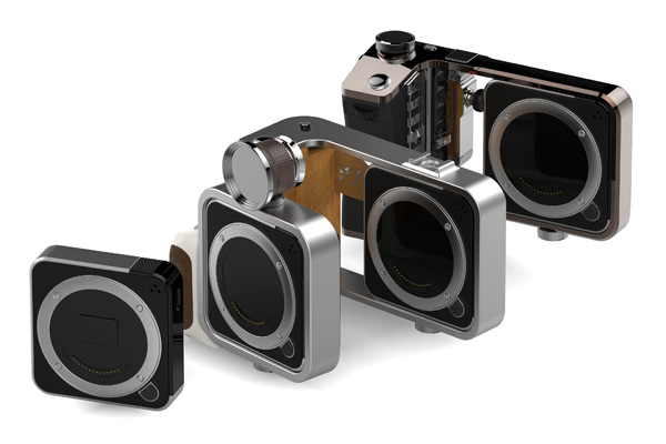 Так, электронная начинка и сенсор представляют собой отдельный блок, а внешний корпус, внешний видоискатель и объективы "прикрепляются" в нужной конфигурации.