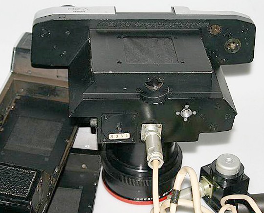 Малоформатный аэрофотоаппарат АФА-39 производства КОМЗ с объективом «Уран-27» и среднеформатный автоматический фотоаппарат «Киев-С»