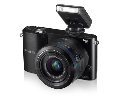 NX1100 оснащена 20 мегапиксельным КМОП-сенсором формата APS-C. Имеет большой 3-х дюймовый экран на 921 тысячу точек. Полноценный встроенный беспроводной интерфейс позволяет передавать фотографии на внешние устройства во каналу Wi-Fi. Последовательная съёмка — до 8 кадров в секунду, запись видео в FullHD. В комплекте к аппарату прилагается ПО Adobe Lightroom.
