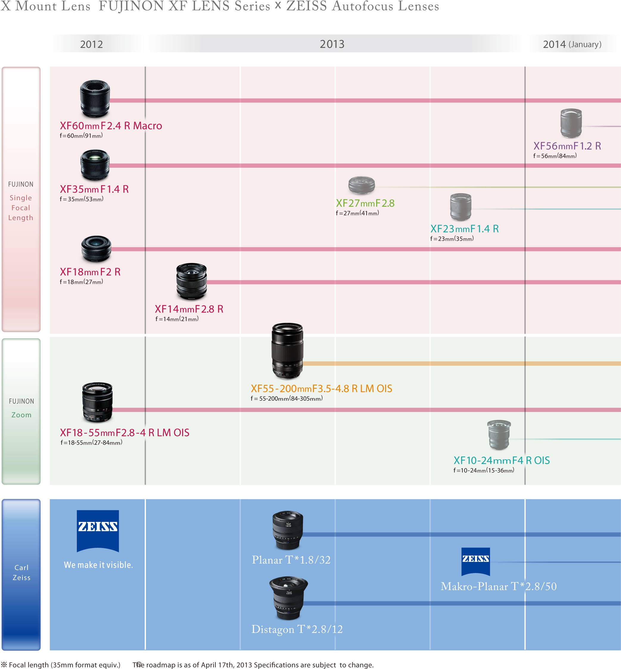 Также стало известно о производственных планах компании по формированию широкой линейки объективов под XF и X-mount: суммарно под эти разъёмы будет выпущено 10 объективов XF и 3 X-Mount, с диапазонами ФР от 15 до 305 мм.