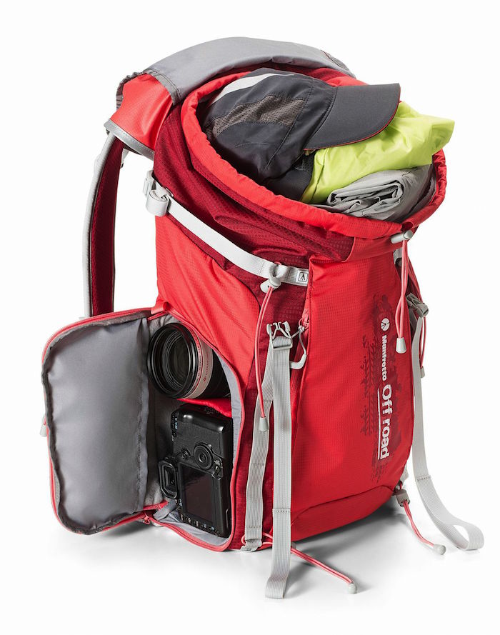Рюкзак «Off road Hiker» оптимизирован для пеших путешествий с акцентом на фотографию. Половина объёма предназначается для небольших личных вещей и всего необходимого в походе, в то время как нижняя половина оснащается съёмным чехлом, в который помещается камера с объективом.